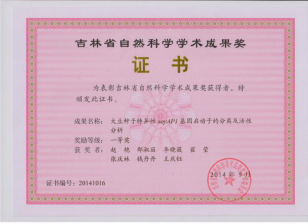 吉林省自然科学学术成果一等奖 2014年 “大豆种子特异性soyAP1基因启动子的分离及活性分析”