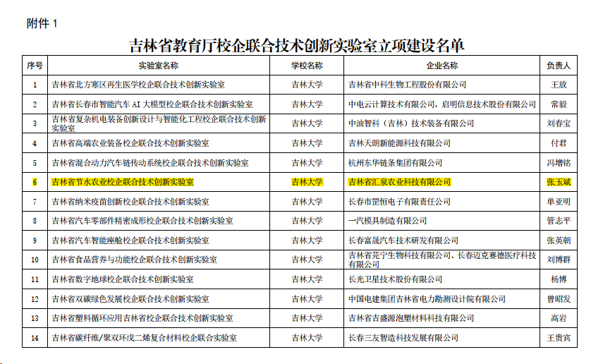 “吉林省节水农业校企联合技术创新实验室”是由吉林省教育厅、吉林省工业和信息化厅于2023年12月批准建设(吉教联〔2023〕94号),与吉林省汇泉农业科技有限公司联合申请创建,隶属于pp电子游戏官网。