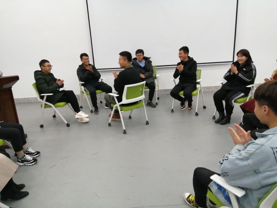 此次团体心理辅导活动共分为三个阶段:热身阶段、过渡阶段和结束阶段,每个阶段又分为几个不同的环节。为了让同学们不再拘谨、快速融入,首先在热身阶段进行了“一分钟鼓掌”小游戏,引导同学们交流预期和现实的差距。开始时,大多数同学的预期偏低,这个环节极大增强了同学们的信心。过渡阶段中“信任之旅”环节,同学们群策群力,坚持不懈,通过团队协作达成了目标,提高了小组成员的默契和团队凝聚力。在总结阶段,每位同学写下自己的感受和收获,同他人交换分享,大家都收益匪浅。最后同学们一起合作绘制了“团体树”,并合影留念。至此,本次活动圆满结束。