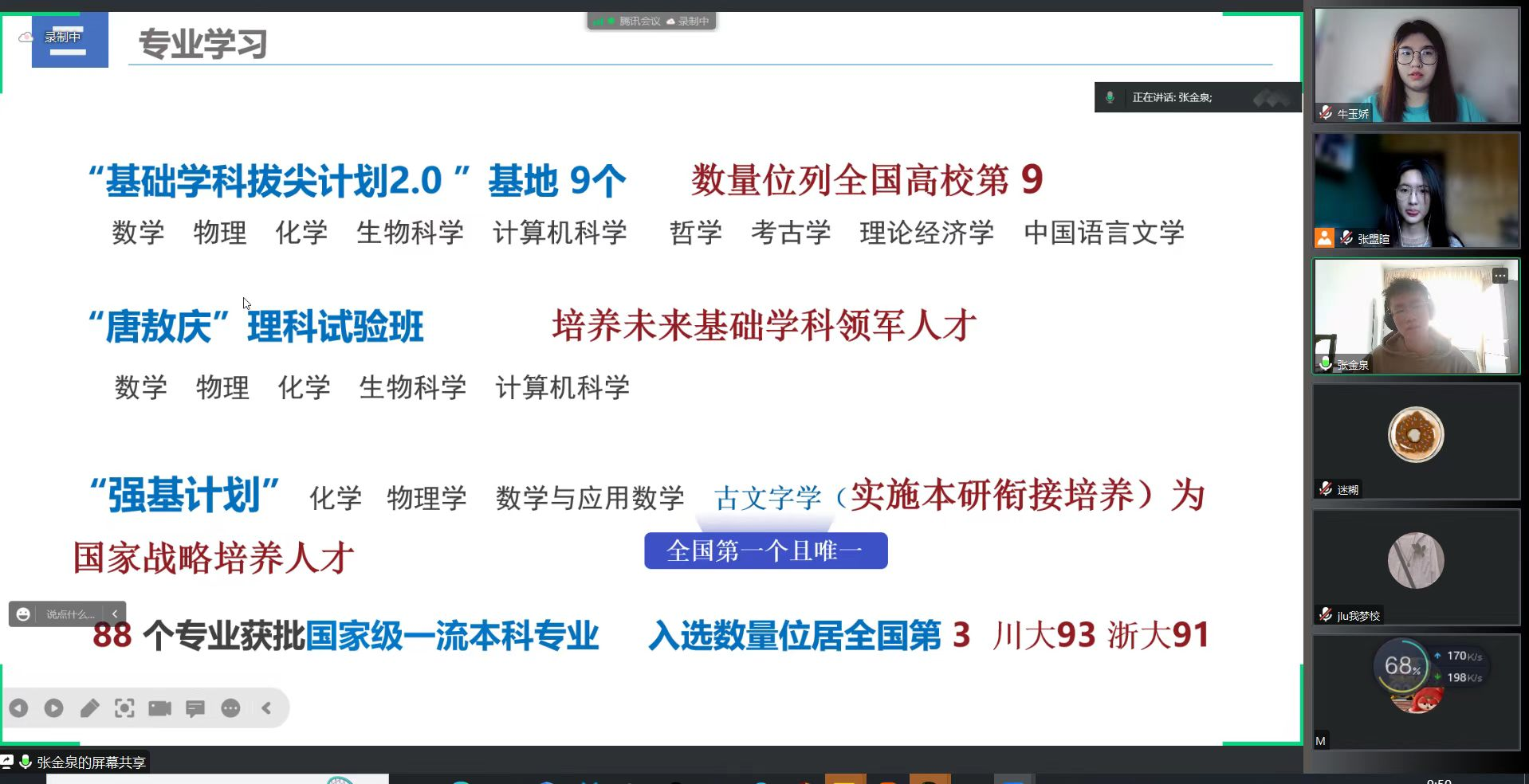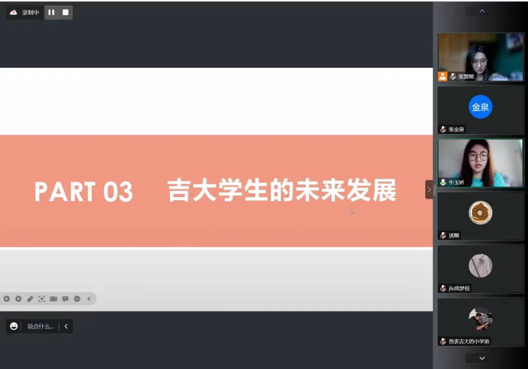 通过腾讯会议的方式进行了母校行宣传活动。前期调研的基础上,初步制定了活动计划。本着“回报母校,宣传吉大”的活动宗旨,希望通过实际行动,搭建联系的纽带,积极与老师同学沟通交流,了解他们有关大学的问题、学习上的困惑,为下一步经验交流做了充分的准备。在宣讲会上介绍pp电子游戏官网的优良校风、展示丰富多彩的大学生活以及如画的pp电子游戏官网美景,并且结合莒县第二中学学生的学习水平介绍一些个人的学习经验并答疑解惑。