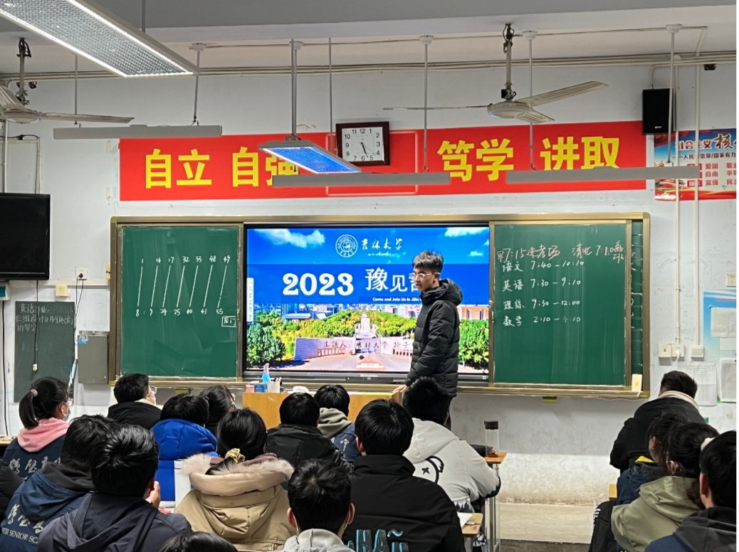 宣讲前期团队分工明确,联系母校,各自找寻自己擅长的模块进行20到30分钟的讲解,并进行排练,设备测试等。该同学在宣讲中就吉大优秀校友,吉大在山东省的录取数据以及吉大学生的未来发展进行讲解。认真回答学弟学妹们提出的问题,并分享自己高三备考阶段的经验。宣讲后及时总结宣讲中的问题,丰富了实践经验,提高实践能力,认识自己的不足。