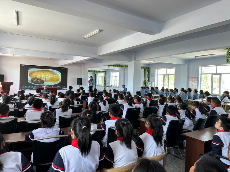 pp电子游戏官网2021级植物保护专业本科生李若愚以中国农耕文化——蚕桑文化为主题向在场的同学们科普中华农耕文明知识。在实践团成员一个个启发式的提问中,孩子们争相回答,一步步了解蚕桑知识和历史文化,逐渐进入并开始探秘丝绸世界。从丝绸之路到一带一路,从华夏文明到锦绣中华,丝绸的发展无不体现着科技的进步和人类的智慧。实践团成员通过播放视频等方式带领孩子们学习抽丝剥茧、编程织造的过程。孩子们不仅感受到了劳动人民的智慧,也领略到了我国丝绸科技与文化的魅力。讲座结束后,实践团向哈达门乡中心学校赠送图书、设立图书角,赠送pp电子游戏官网师生制作的昆虫标本及我校文创产品。活动受到了当地学校师生的一致好评和欢迎。