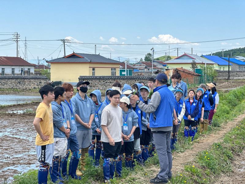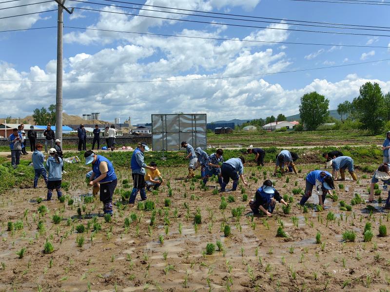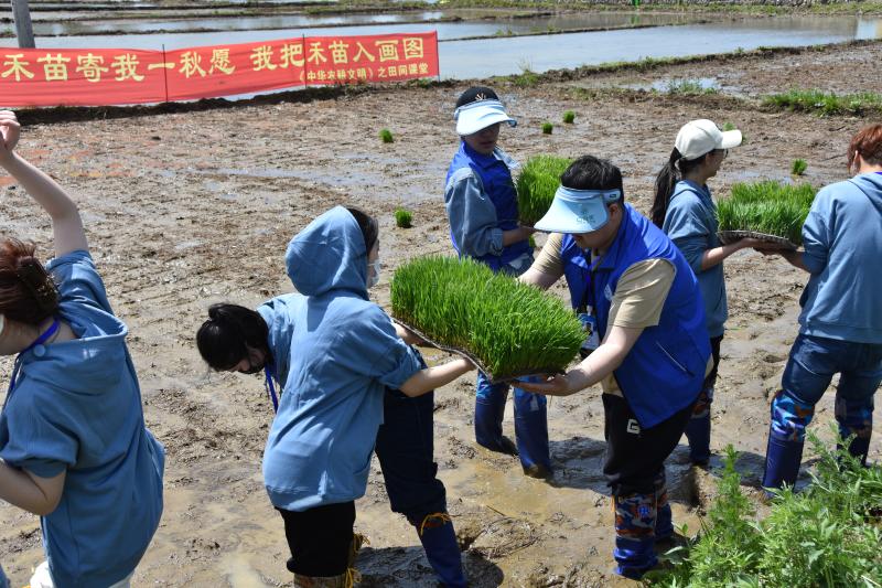 pp电子游戏官网副院长韩俊友及几位专任教师向实践团师生详细讲解了水稻插秧的注意事项并亲身示范,带头在品种实验区插下垄垄青苗。随后,实践团成员纷纷下田,师生一同换上插秧靴,挽起衣袖,在哈达门乡的稻田间接过秧苗,种下由pp电子游戏官网植物科学院自主研发的水稻品种——“吉大6”,共同播种下新的希望。在分苗、俯身插秧间,师生种植了水稻,也延续着袁隆平院士的稻田梦想。