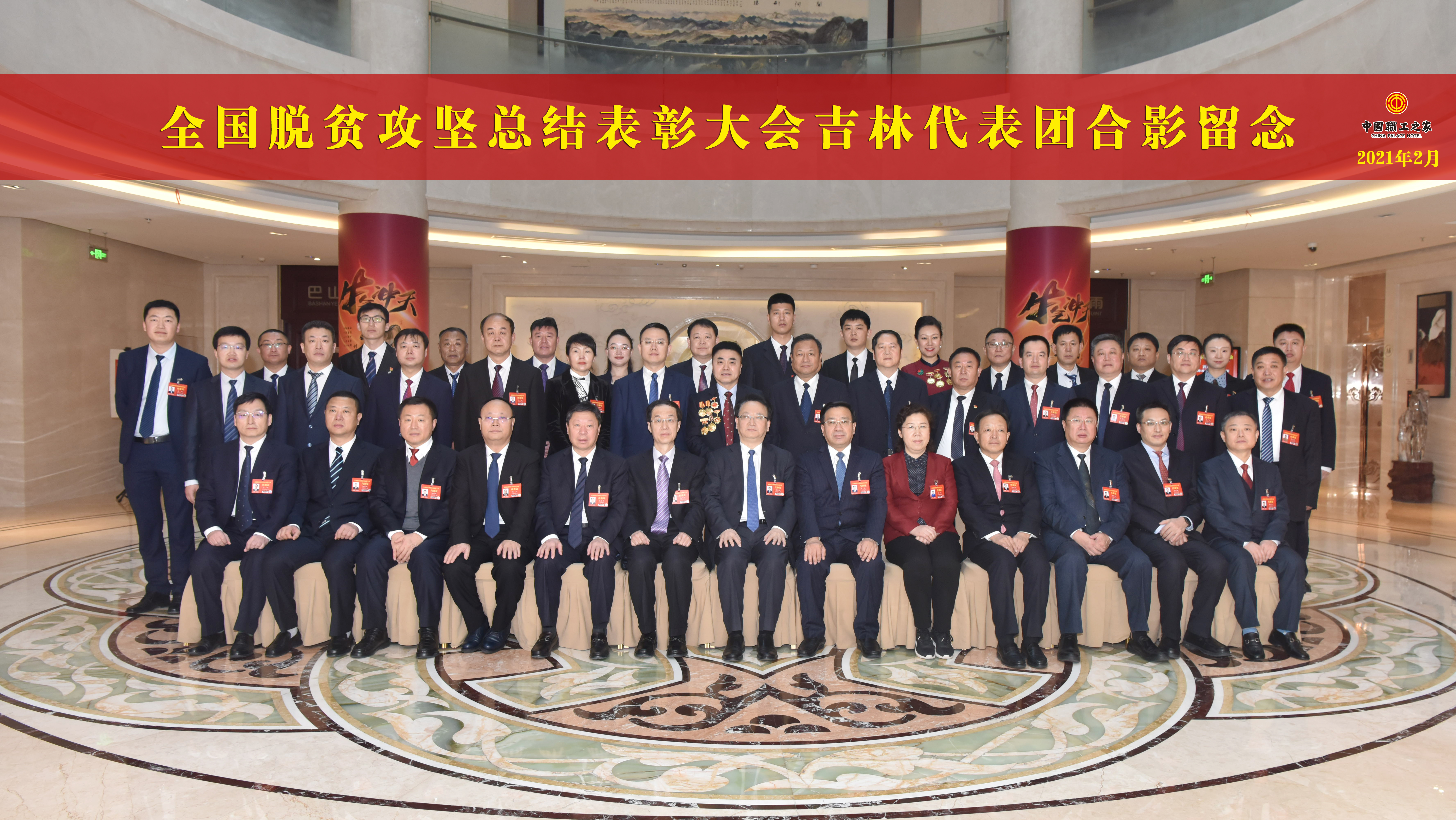 全国脱贫攻坚总结表彰大会吉林代表团,崔金虎教授在第三排右数第五位
