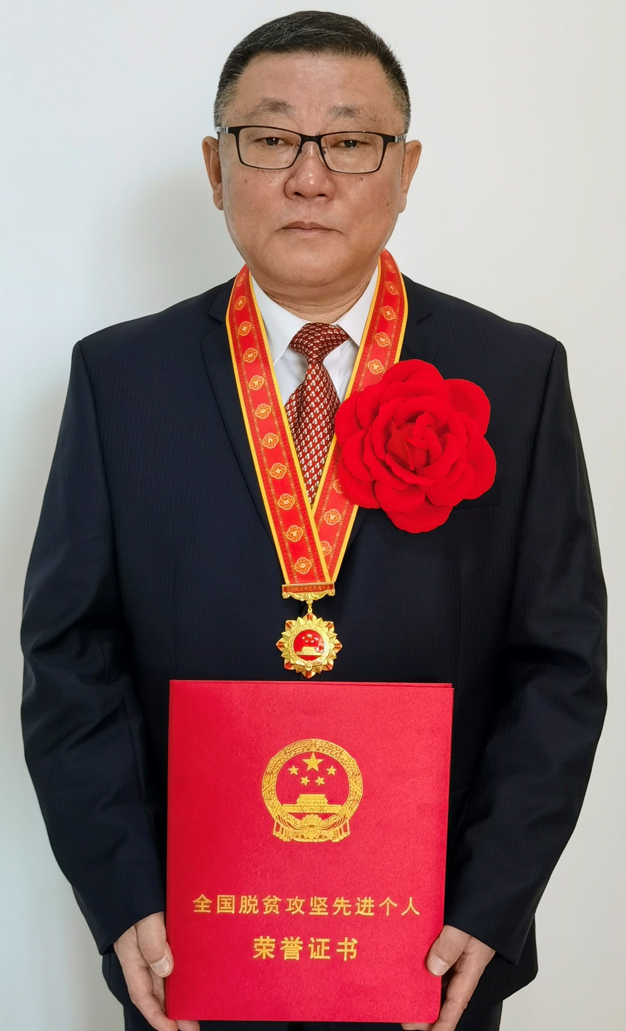 崔金虎教授与全国脱贫攻坚先进个人荣誉证书和奖章