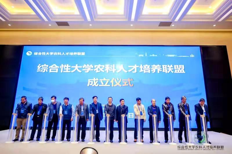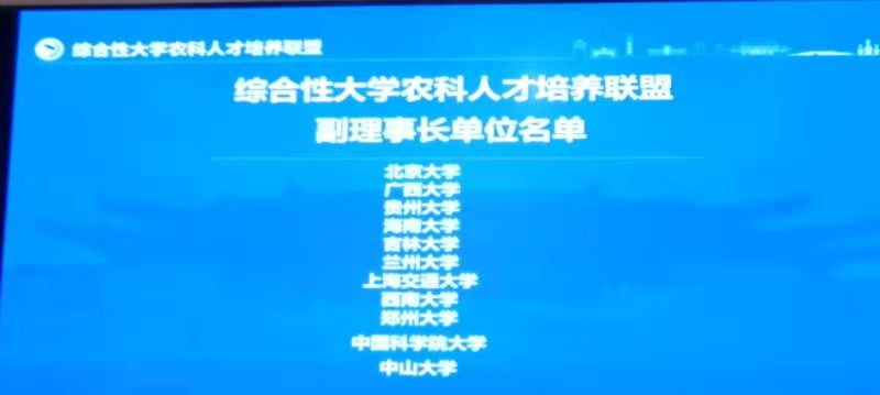 “综合性大学农科人才培养联盟”是由浙江大学农业与生物技术技术学院等国内综合性大学涉农学院联合发起成立的全国性高校合作组织,旨在探索新农科发展路径,创新新时代办学模式,培养更高质量、更高要求、更高素质的农科拔尖创新人才。仪式通过了联盟章程,联盟第一届理事会、理事长和副理事长名单,以及秘书处挂靠单位名单。现场领导嘉宾和联盟理事单位代表共同启动“综合性大学农科人才培养联盟”。联盟理事长、浙江大学农学院院长陈学新汇报联盟共同行动计划。浙江大学当选联盟理事长单位,我校与北京大学、广西大学、贵州大学、海南大学、兰州大学、上海交通大学、西南大学、上海交通大学、中国科学院大学、中山大学共同成为副理事长单位。