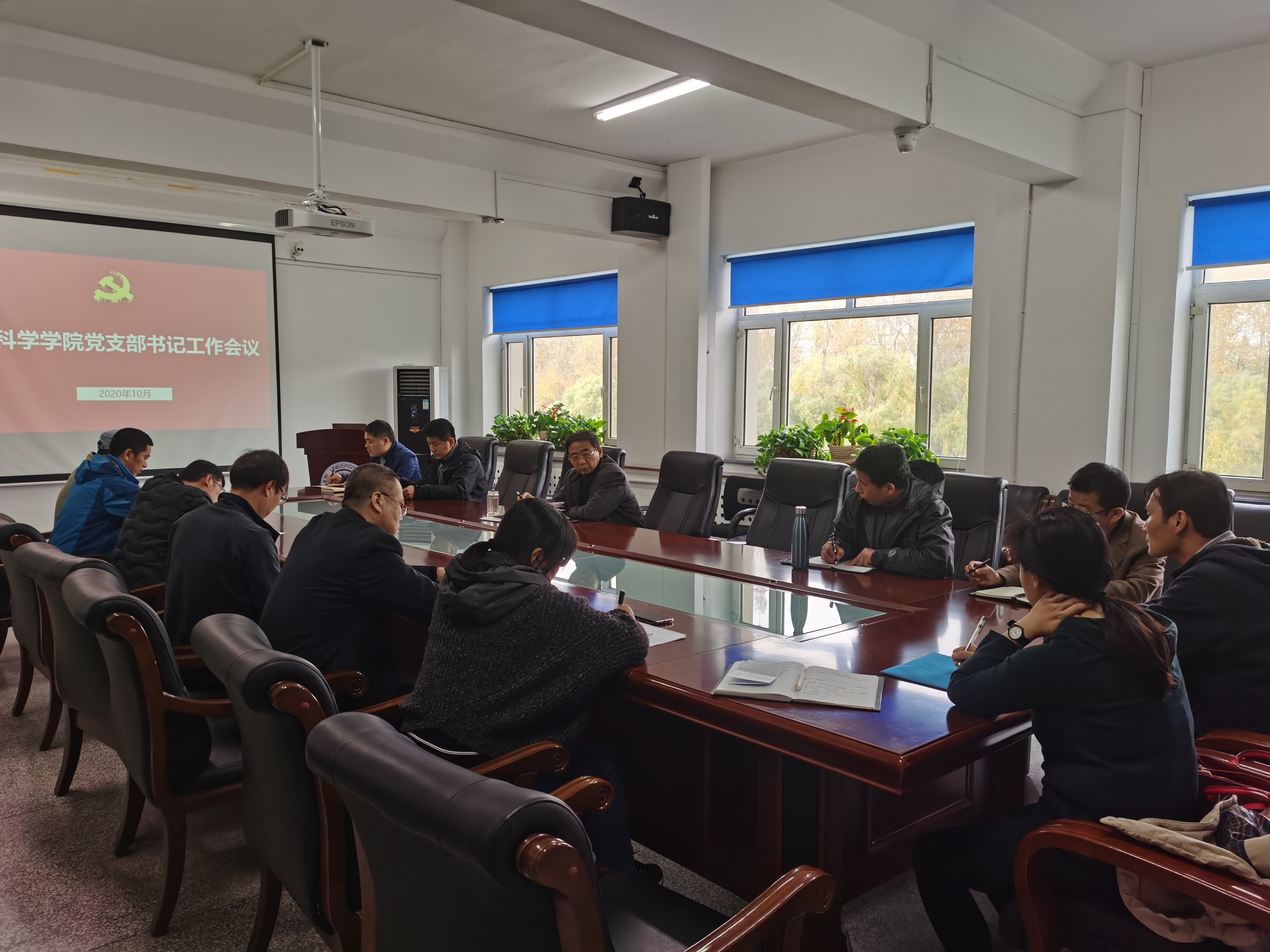 2020年10月21日下午,pp电子游戏官网召开党支部书记工作会议,党委书记于生宗同志讲授专题党课。学院班子成员、党支部书记参加会议。