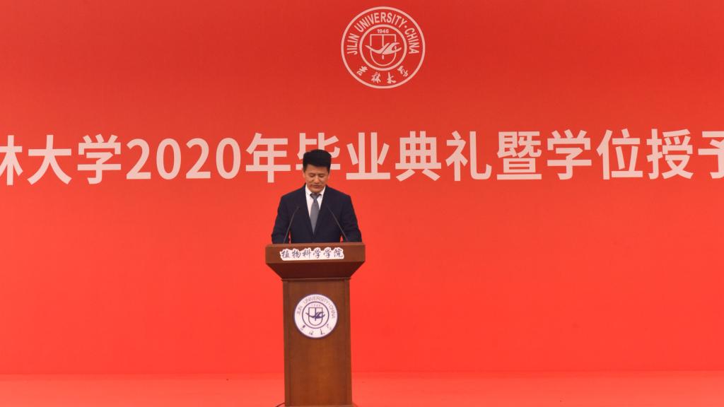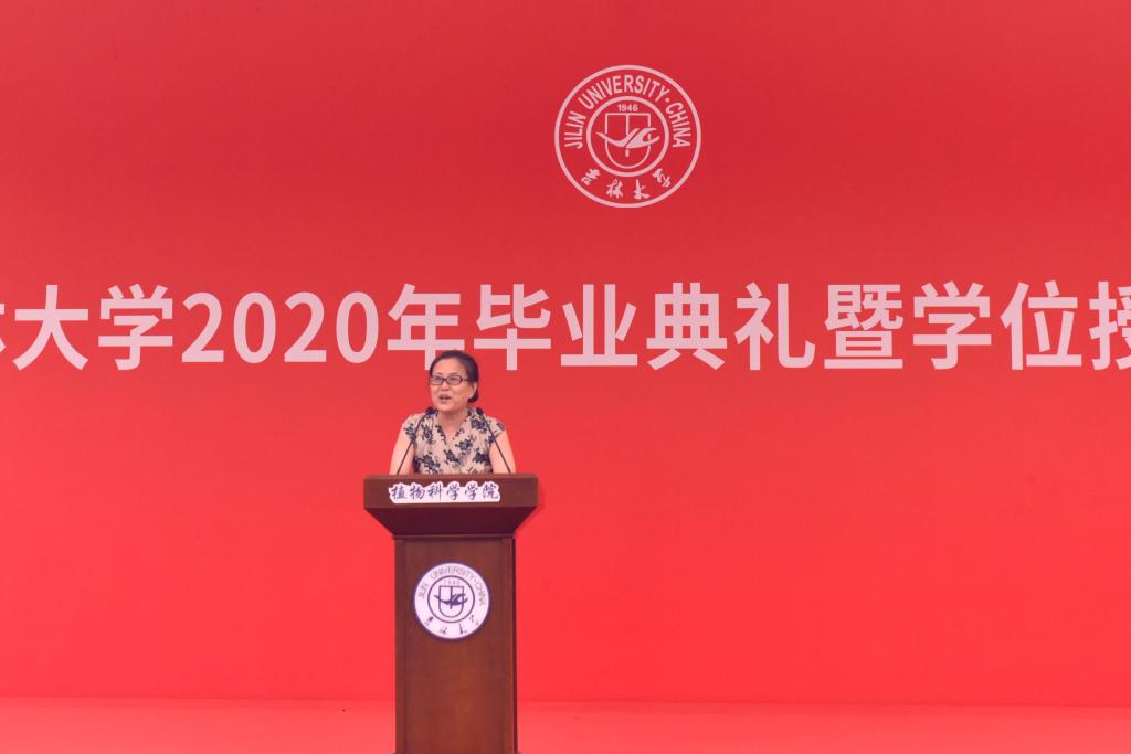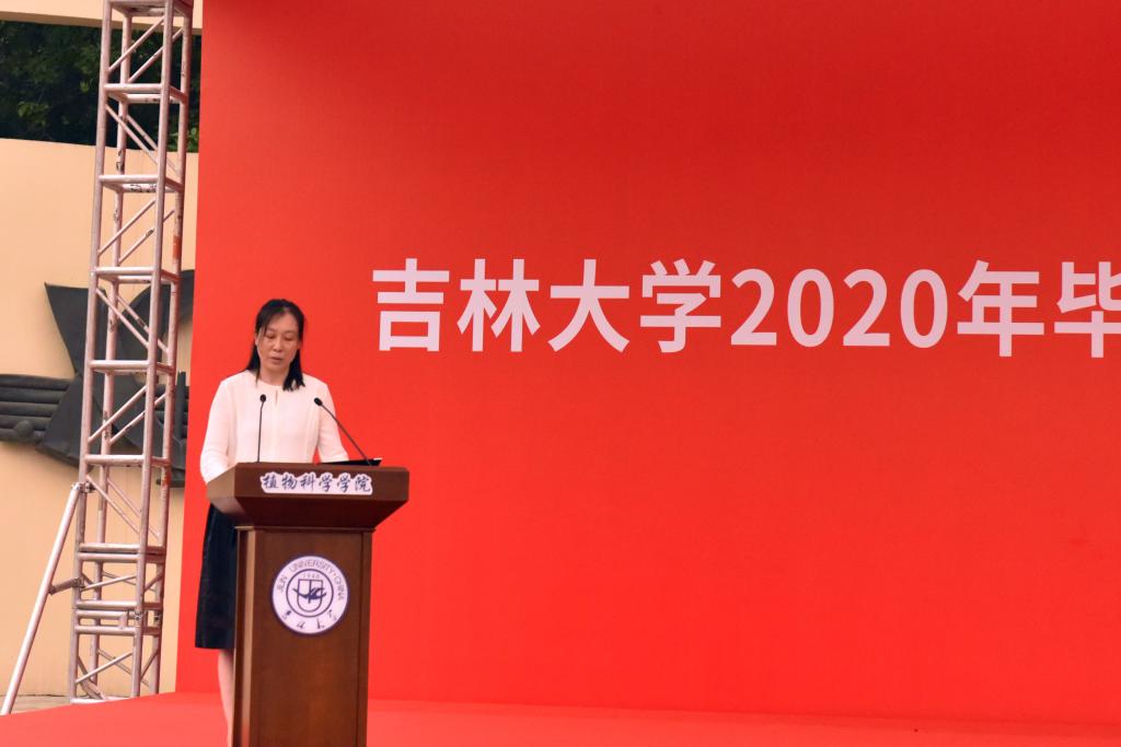学院教学委员会主任委员、2020届毕业班班主任边鸣镝教授发言。她希望同学们在生活的中洪流滚滚向前,做好再扬帆起航的准备,“我既盼你们幸运加持、顺遂一生,也望你们波澜壮阔、峥嵘岁月,不管怎么样,你们一定要带着对自己过往生活的反思,要不断的自省,在失败中的伤痛里汲取战胜暴风雨的力量,让过往所有的遗憾都化作未来惊喜的铺垫,朝着我们的目标,星夜兼程,总有一天你会成为最美的自己。”