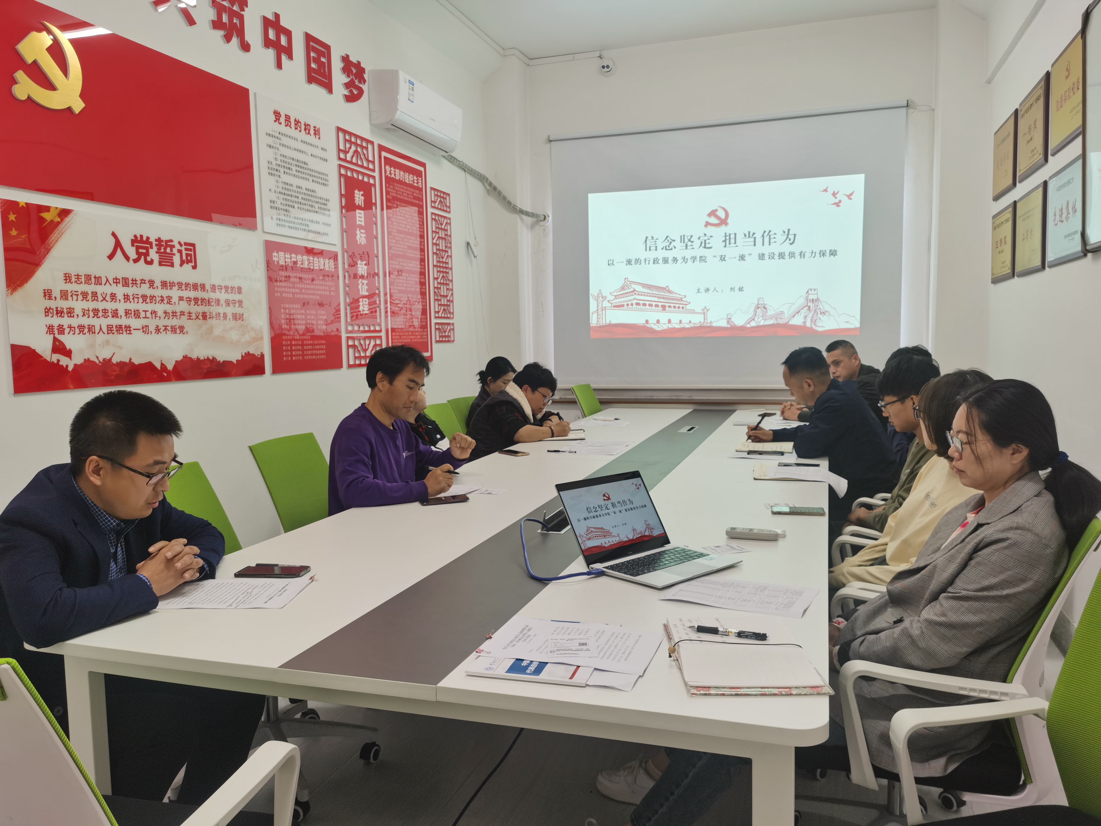 副院长刘铭以“坚定信念,担当作为,以一流的行政服务为学院‘双一流’建设提供有力保障”为题,围绕形势和政策变化梳理分析中央和上级机关、学校党委有关决策部署带来的新机遇;围绕实现学院“十四五”规划各项目标和任务提出党员干部要进一步坚定信仰、信念、信心。刘铭对学院机关党员干部提出四点工作要求:一是要牢固树立服务为先的工作理念。要多做师生需要的事,多做对学院发展有益的事。二是要不断增强坚持原则的责任担当。面对原则问题敢于坚持,不沉默失语,面对矛盾敢于迎难而上,不无动于衷。三是要潜心修炼善于作为的工作本领。既能牵住“牛鼻子”、把握重点,又能“十指弹琴”、统筹兼顾。四是要时刻怀揣不逾底线的敬畏之心。勤于修身律己,稳得住心神、管得住行为、守得住清白。