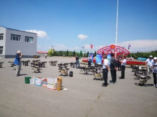 ▲玉米主要病虫害“二防一减一增”应急航化作业现场