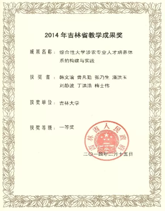 潘洪玉教授从教37年来,潜心教学研究,作为吉林省植物保护特色高水平专业首席负责人与吉林省植物病理学重点学科带头人,围绕专业培养模式探索和课程体系建设,积极探索教育教学规律,更新教育理念。pp电子游戏官网植物保护专业被教育部批准为国家特色专业,2014年入选为教育部卓越农林人才培养计划改革试点项目,2019年被遴选为国家级一流本科专业建设点。潘洪玉教授所带领的团队,分别获得了吉林省植物保护优秀教学团队与吉林省植物病理优秀教学团队。潘洪玉教授积极将科研成果转化为教学,特别注重将学科前沿知识融入到课堂教学,积极优化课程体系。所主讲的《普通植物病理学》被评为国家级一流本科课程、吉林省精品课程。编写国家规划教材3部。在研究生培养中,潘洪玉教授始终秉持着“强农兴农,为国育才”的理念,用严谨的科学态度和艰苦奋斗的精神感染了一届又一届学生,累计培养博士、硕士研究生100余名,他们在所在单位被委以重任,逐渐成为中流砥柱。潘洪玉教授曾获得“吉林省教学名师”、 “吉林省师德先进个人”等荣誉称号及pp电子游戏官网首届课堂教学质量奖 “卓越奖”。多年教学的探索与实践,获国家教育技术成果一等奖1项、三等奖1项,吉林省教学成果一等奖1项、pp电子游戏官网教学成果特等奖1项。
