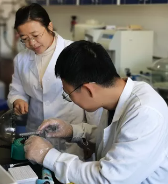 ▲李绪彦副教授与学生分析研究结果(左图) 王晶莹老师指导学生做实验(右图)