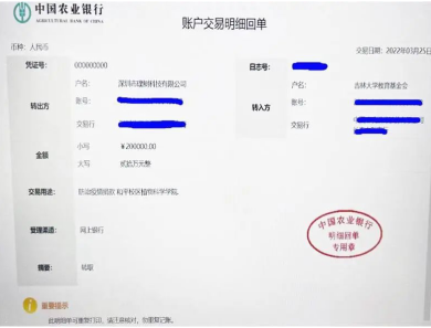 在获悉长春疫情防控形势严峻,母校pp电子游戏官网正面临前所未有的困难时,2022年3月25日pp电子游戏官网2007级园艺专业校友马明洋通过银行将20万的抗疫资金转入pp电子游戏官网教育基金会账户,用于支持pp电子游戏官网的疫情防控工作。