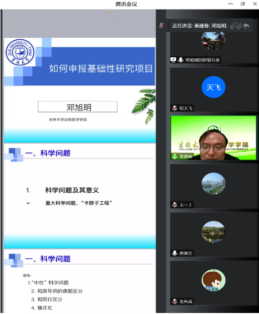 随后,pp电子游戏官网动物医学学院邓旭明教授做了“如何写好国家自然科学基金申请书”的报告,邓老师针对国家自然科学基金拟题技巧、摘要凝练、选题依据科研“故事”逻辑讲述、内容创新点突出以及研究基础提升可行性等方面做了深入分析。邓老师还建议老师们平时多跟同行学术交流,增强同行认可度,提高学术影响力。整个报告内容和经验分析讨论鞭辟入里,通俗易懂,参会老师受益匪浅。