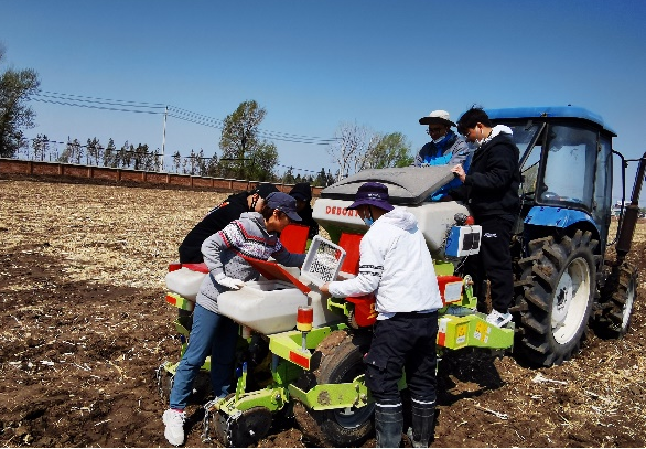 作物高产栽培团队在3月底主要成员投身于春播备耕工作中。崔金虎教授带队,携张玉斌、石武良、李斌等几位老师和同学开展通榆县边昭镇玉米高产技术模式建立与推广工作,共设置耐盐碱玉米种质资源筛选试验、玉米-花生-谷子三区轮作试验、不同程度盐碱地整理工程试验等,累计面积180余亩,人工点播玉米资源522份,机械播种玉米品种105个;指导高产田创建玉米播种面积近2000亩。该团队在校内农业实验基地195亩的试验田承载了团队的主要课题研究任务,五一假期由王洪预和李秋祝老师带队,携侯利园老师及学生,完成玉米、大豆试验田合计13公顷的播种工作,此外布置田间耕翻还田试验、玉米大豆带状间作轮作试验、施氮量和密度互作试验等共12个,其中多年定位试验4个。
