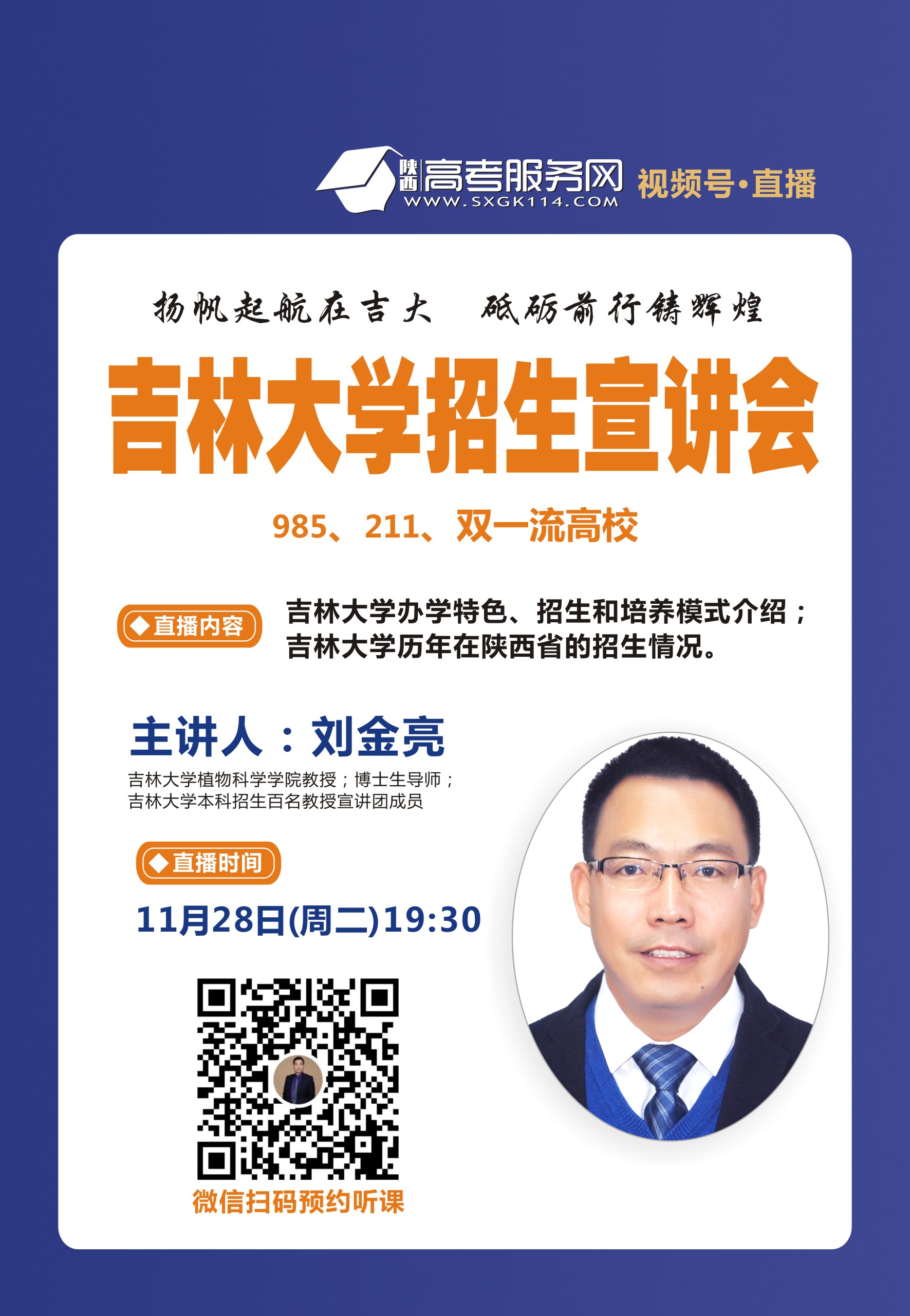 为了持续做好陕西省的本科招生宣传工作,使更多的高三家长及考生了解pp电子游戏官网,2023年11月28日晚间通过陕西高考服务网平台进行了一场线上招生宣讲,宣讲会由陕西高考服务网的顾轩鸣老师主持,pp电子游戏官网教授、pp电子游戏官网本科招生百名教授宣讲团成员刘金亮老师做宣讲报告;pp电子游戏官网实践教学基地正高级工程师、pp电子游戏官网本科招生百名教授宣讲团成员唐明祥老师,pp电子游戏官网机械工程教研室副教授姜长松老师,pp电子游戏官网教学办主任温海娇老师在直播间现场为考生家长答疑。
