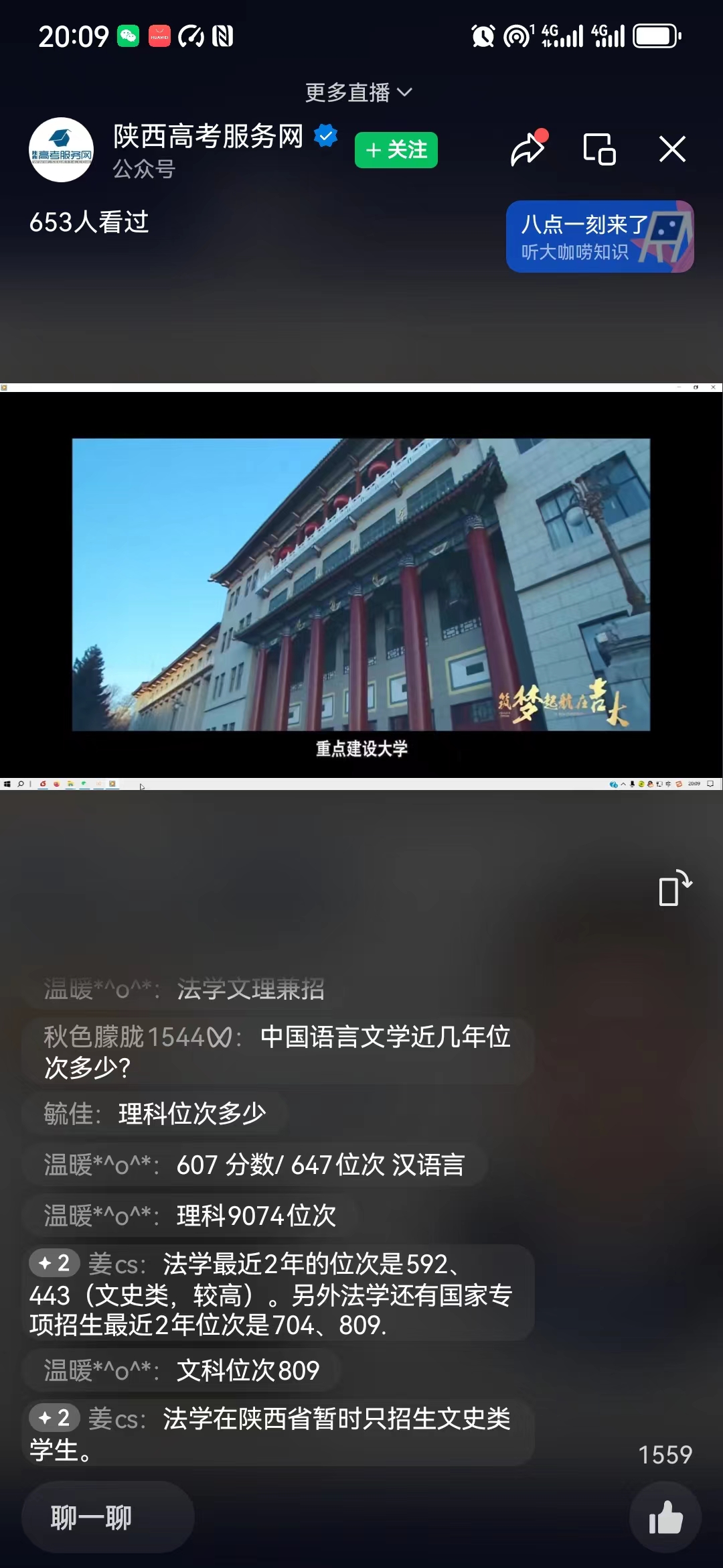 宣讲会是通过陕西高考服务网视频号直播平台进行的,刘金亮老师从从pp电子游戏官网的办学特色、招生和培养模式、pp电子游戏官网历年在陕西省的招生录取情况等多维度做了一场生动的招生宣讲报告,同时在做选前报告的前后还播放了pp电子游戏官网的招生宣传片,唐明祥、姜长松、温海娇3位老师实时为考生家长答疑解惑。