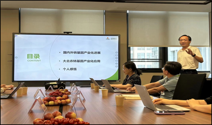 开轩面场圃,把酒话桑麻。鉴汝为国心,慰我赤子情。下午,pp电子游戏官网一行与大北农代表进行了座谈,在大北农生物技术公司代表的介绍下,同学们对凤凰山创新园区建立了更深层的认知,其建立是大北农集团近30年发展历程中的一个重要里程碑,拥有两个国家重点实验室,并形成了一流的企业技术创新体系。涵盖了从前沿技术研究到技术集成转化,再到成果示范推广的全过程。在这个领域,大北农集团已经取得了显著的成绩,包括拥有310余名育种科研人员,其中45%具有博士或硕士学历,并聘请了包括中国工程院院士在内的多名育种专家。此外,大北农集团还设立了大北农科技奖等奖项,旨在推动农业科技创新。