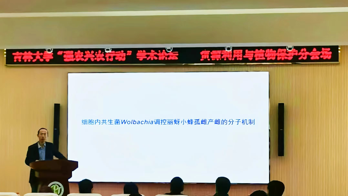 栾军波教授以“共生菌调控粉虱及其寄生蜂生殖的分子机制”为题进行了一次富有启发性的报告。栾军波教授从含菌细胞共生菌Hamiltonella通过组蛋白甲基化修饰调控烟粉虱两性生殖的性比;含菌细胞外共生菌Rickettsia通过影响保幼激素含量调控烟粉虱产卵量和性比;细胞内共生菌Wolbachia通过获取真核源水平转移基因影响性别决定途径调控粉虱寄生蜂丽蚜小蜂孤雌产雌。揭示了共生菌通过调控宿主蛋白翻译后修饰影响线粒体功能调控昆虫生殖,阐明了细胞内共生菌通过调控激素信号途径影响昆虫的生殖,证明了共生菌通过水平基因转移事件获取昆虫源基因驱动昆虫性别决定途径的进化,从而调控宿主的性比,发现了共生菌与宿主在昆虫性别决定途径上的协作是昆虫与微生物共生关系进化的新机制。