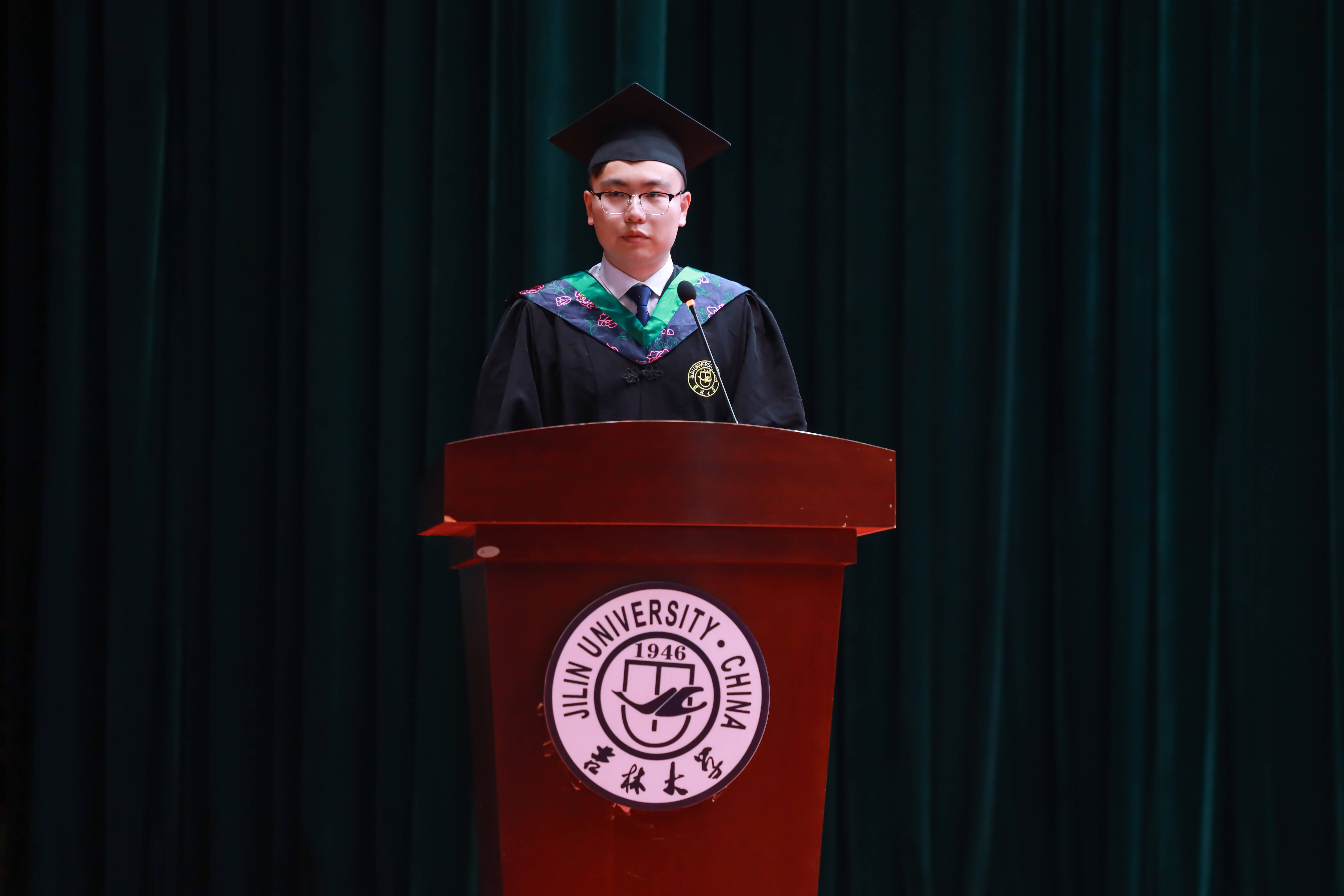 2025届毕业研究生代表,pp电子游戏官网准聘本科生专职辅导员薛傲然同学发言。薛傲然分享了研究生阶段在实验室攻坚克难的科研故事,感恩导师在学术与人生道路上的指引;并表示未来将以辅导员身份继续传承吉大精神,用责任与热爱助力更多学子成长,在育人事业中书写青春答卷。