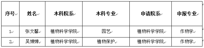 学生自愿申报,材料审核,面试考核,确定植物科学学院2025年招收优秀应届本科毕业生直接攻读博士学位研究生预选名单公示如下,公示期2024.6.21-2024.6.23