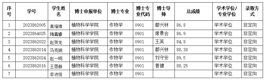 年硕博连读研究生推荐选拔通过考核研究生名单