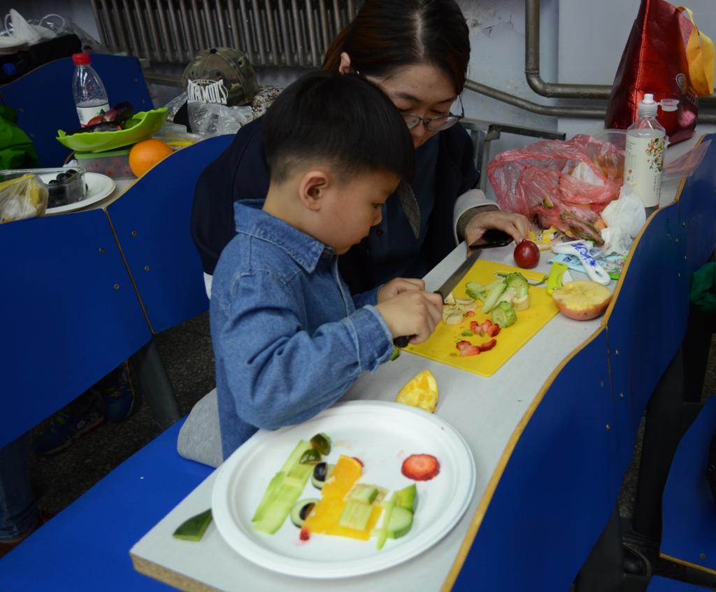 本次公益性科普活动是第二项内容是由王晶莹老师主讲的“水果的营养与健康”。王老师从水果的分类方法、营养价值、科学的食用方法以及食用禁忌等方面进行了绘声绘色的讲解。在接下来的水果鲜切环节中,小朋友大朋友们充分发挥想像力与创造力,不一会儿,一盘盘制作精美、造型独特,果香四溢、色彩鲜艳的水果拼盘在小朋友们和大朋友们的手下变成了富有创意的艺术品,各式水果拼盘逐一登台亮相,让孩子自己体会到了成功的喜悦。