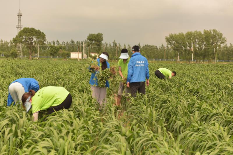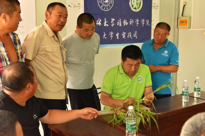 随后,实践团来到pp电子游戏官网崔金虎教授的试验田进行参观学习。近年来,崔金虎教授为当地农民提供优质种子,结合专业知识对农民进行技术指导,将脱贫攻坚工作开展到田间地头,亲自为农民授课,积极参与并推进县乡农技人员的继续教育,真真切切地把科研成果应用在田间,把国家的相关政策落实到每家每户,极大的提高了当地农作物的产量以及质量,解决了当地农业发展中存在的诸多问题。在崔金虎教授的指导下,实践团的同学们深入实验田间进行除草,热辣的阳光炙烤着同学们,一颗颗汗水从额头滑过砸在泥土中。除草活动结束后,崔金虎教授为同学们详细讲解浅埋滴灌水肥一体化技术,应用此技术成功实现补水和施肥的高效精准。崔教授亲切地与同学们进行交流,他希望同学们作为农科专业学子,要对农业有情怀、有奉献精神,继承发扬吉大学子最为朴素真挚的家国情怀,真正将科研成果写到田间地头,致力农业发展,助力乡村振兴。