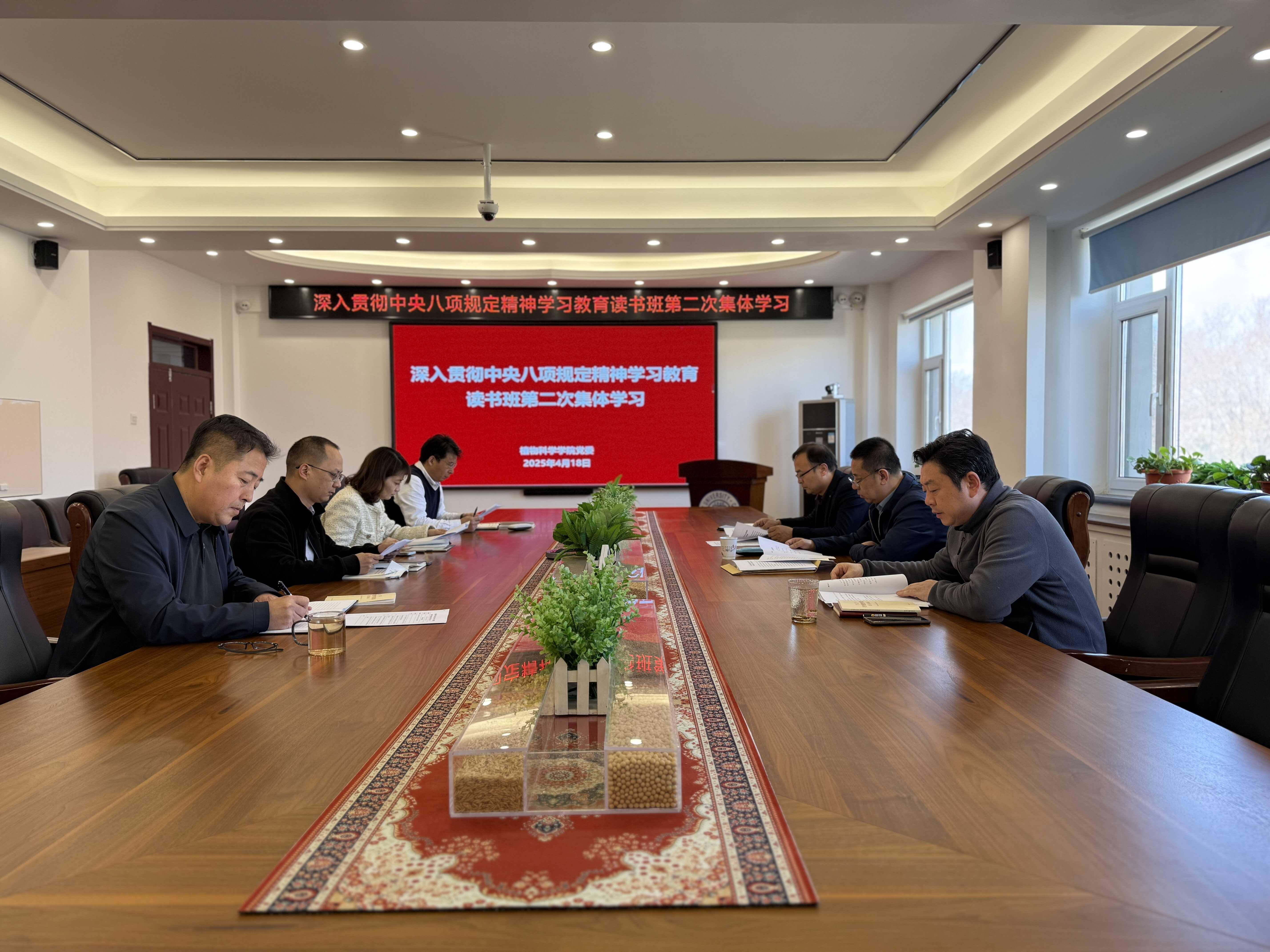 2025年4月18日中午,pp电子游戏官网召开深入贯彻中央八项规定精神学习教育专题读书班(第二次)集中学习,学院领导班子全体成员参会,校党建联络员高福和到会指导,会议由党委书记田进主持。