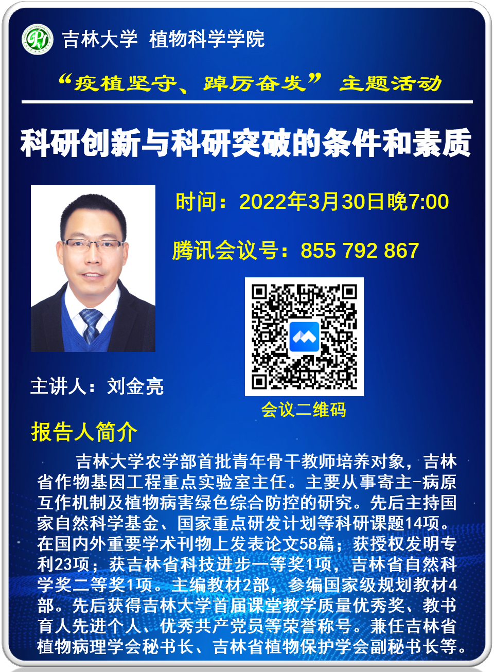 pp电子游戏官网“名师之光”学术报告第36期"The light of famous teachers" Academic Salon of College of Plant Sciences (36)束