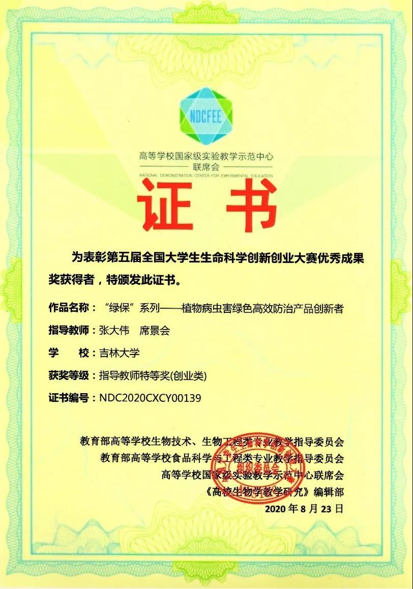 历时近一年,覆盖全国32个省(直辖市)302所高校3687支队伍14000余名学生的第五届全国大学生生命科学创新创业大赛已于日前落下帷幕,在决赛角逐中,我院《“绿保”系列——植物病虫害绿色高效防治产品创新者》项目荣获创业组国家级特等奖,该奖项仅设9个席位,我院项目为pp电子游戏官网仅有的一席,该项荣誉为近年来我院在此赛事获得的最高荣誉。