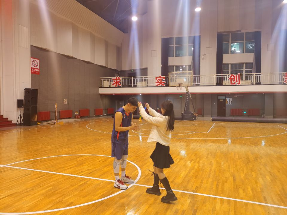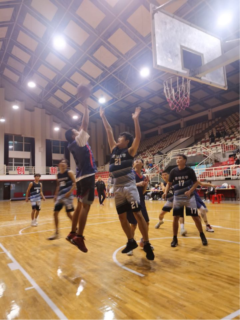 在激烈的冠亚军争夺赛开始前,增加了趣味篮球赛。由我院女同学积极参与组成了四支队伍,她们相互传球,中投命中,充分调动了全场同学们的热情,活跃了赛前氛围。