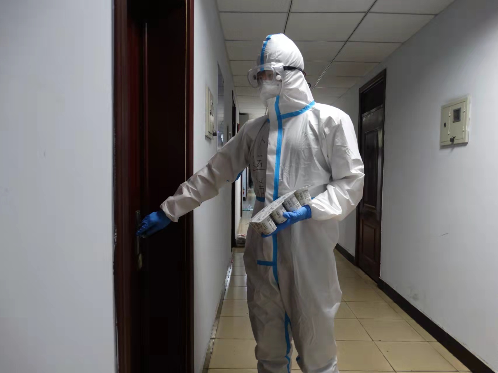 在志愿组织成立的第二天,志愿工作正式开始,尽管工作的前一晚做好了尽可能全面的工作计划,但由于工作经验不足导致志愿工作效率较低。志愿者们没有气馁,在当晚的工作总结中集思广益,在保证安全健康的前提下提出了轮班制、分层制的工作原则,大大的提高了安全保障和工作效率。在已持续两周的志愿工作中,所有人都在勇敢担当,默默奉献,他们行色匆匆,不苟言笑。截止目前,共计发放物资6336人次,组织核酸自测990人次,组织咽拭子检测1881人次,搬运矿泉水476箱,同时每天定时协助楼内保洁人员清理楼内产生的大量生活垃圾。