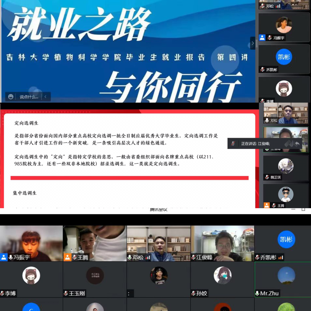 迟日江山丽,春风花草香,在这个生机盎然的季节,毕业的脚步声悄然而至。pp电子游戏官网为培养学生求职意识,扩大研究生就业面,建立择岗择业观念,了解就业形势,熟悉专业对口单位,掌握应聘技能,学院于2022年5月13日晚6:00,举办了第四期优秀毕业生代表线上分享会,分享会有幸邀请了三位即将毕业踏上工作岗位的优秀研究生代表参加,并针对本科生及研究生的就业问题进行了经验分享和交流,会议由植科院研究生辅导员邓松老师主持。