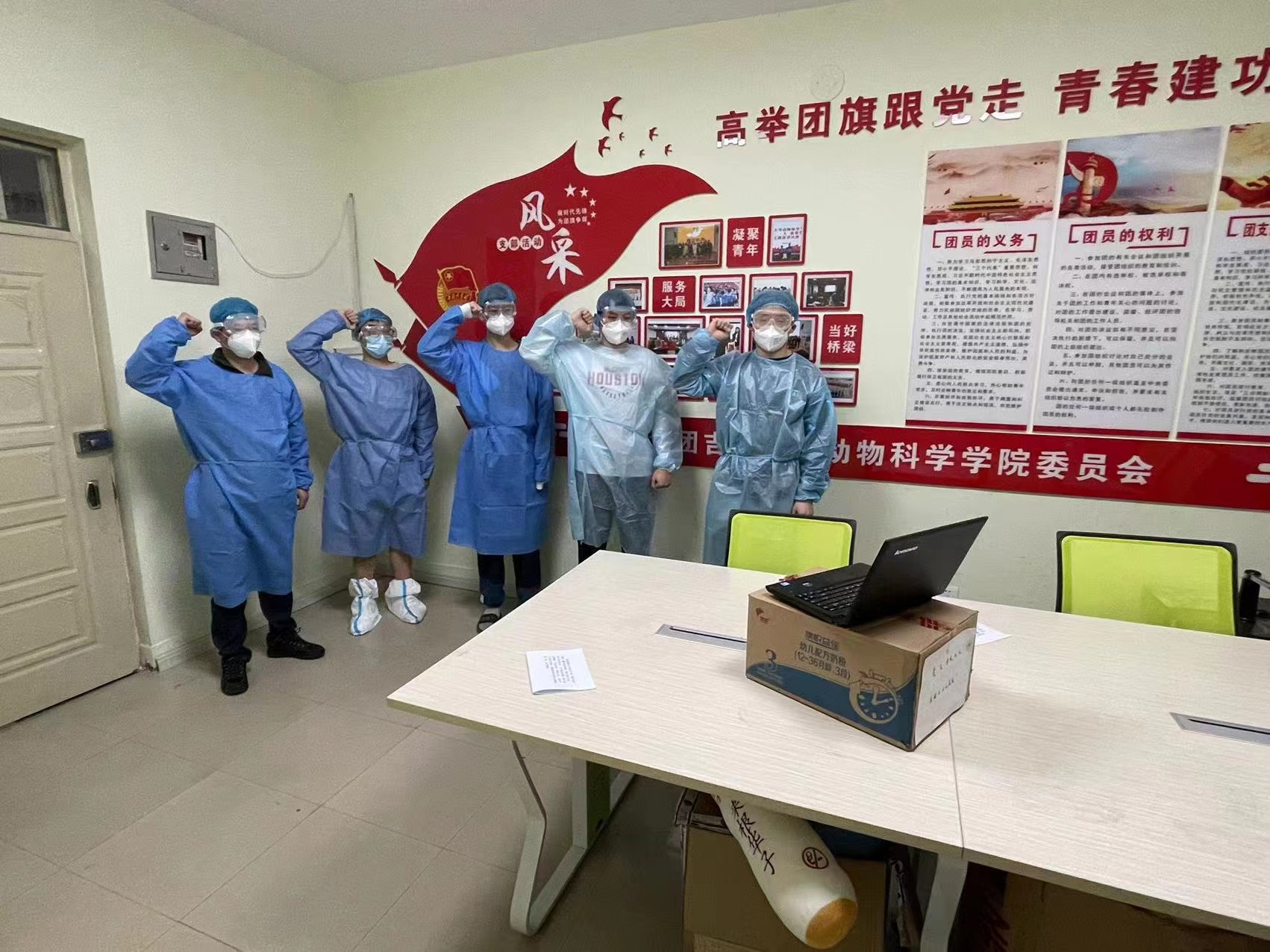 校园实施封闭管理以来,pp电子游戏官网组建了8支学生志愿者队伍。其中,研究生第三党支部副书记冯振宇闻令而动,主动申请成为五公寓志愿者队伍中的一员,并且担任和平校区五号公寓临时党支部书记。