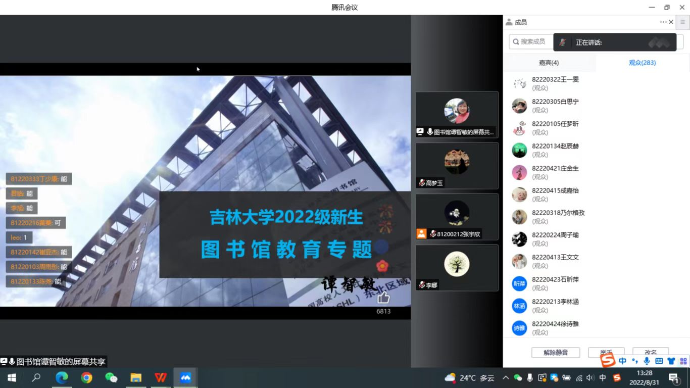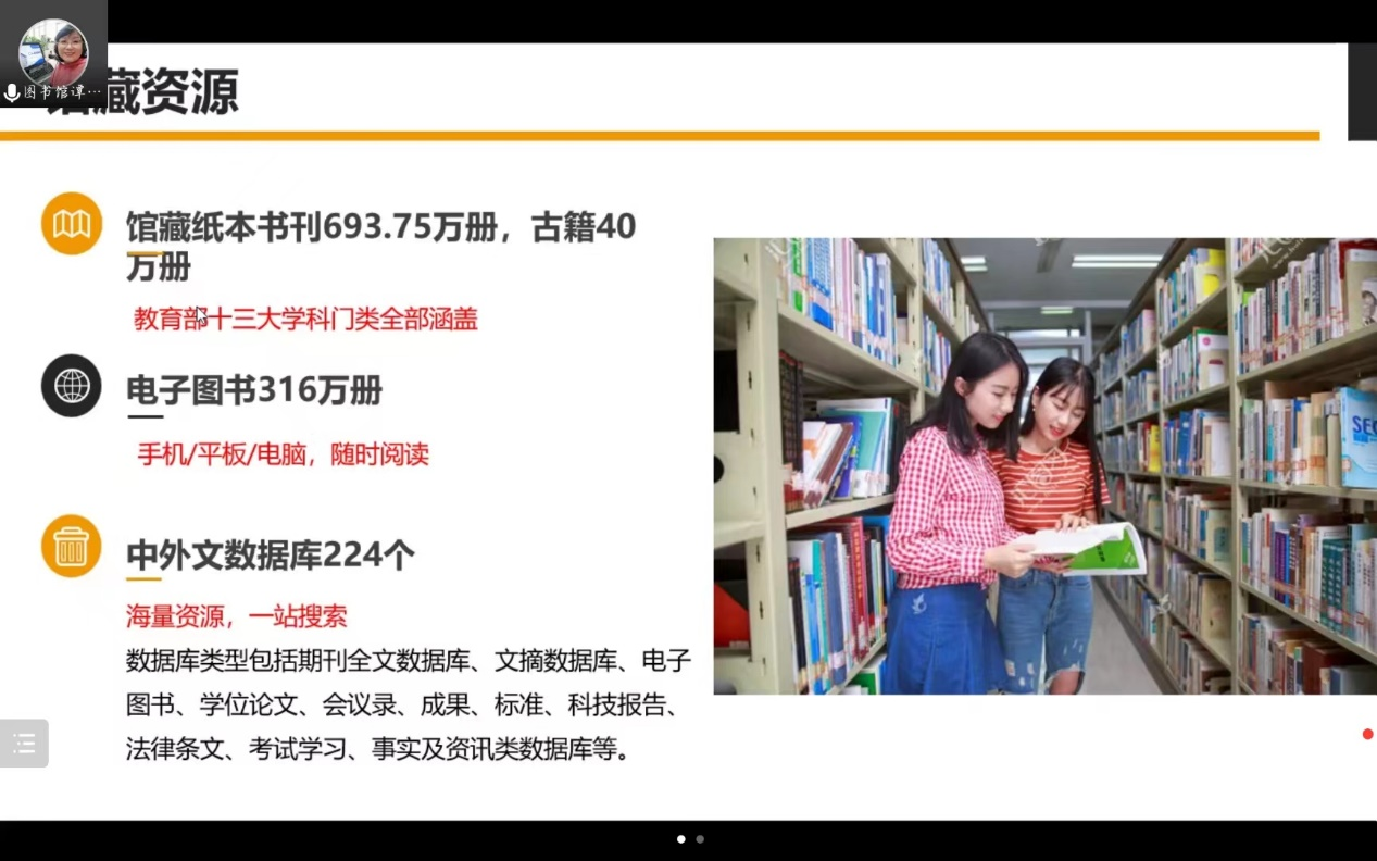 为让新生了解、认识学校图书馆,指导新生学会充分利用图书馆的服务与资源,了解图书馆的服务模式、运行机制、藏书布局、规章制度等,8月31日,pp电子游戏官网与动物医学学院联合举办2022级新生图书馆入馆教育专题线上讲座。本次讲座主讲人为图书馆谭智敏老师,pp电子游戏官网全体2022级本科生、新生辅导员高梦玉线上参会。会议由动物医学学院张宇欣同学主持。
