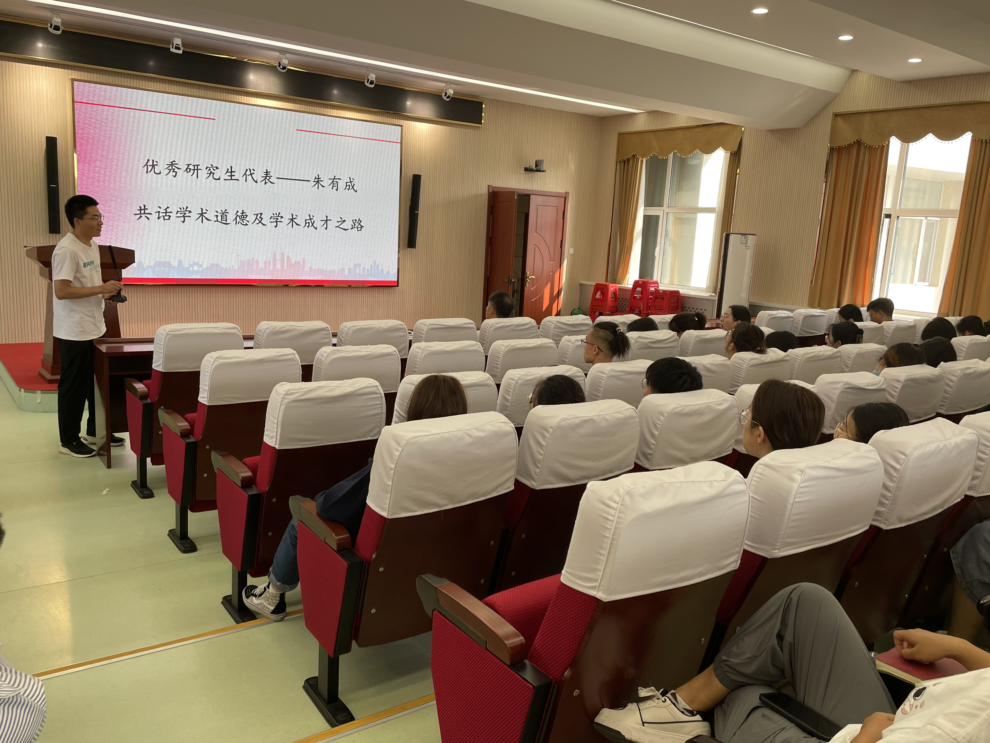 2023年9月20日下午我院邀请优秀博士毕业生朱有成为全体在院研究生做了学习、科研经验分享交流会。在交流会上,朱有成与同学们畅谈学习心得,分享科研经验。朱有成谈到:“做科研最重要的是敢想敢干,只要明确了目标,就要义无反顾、毫不怀疑的去做、去行动。”