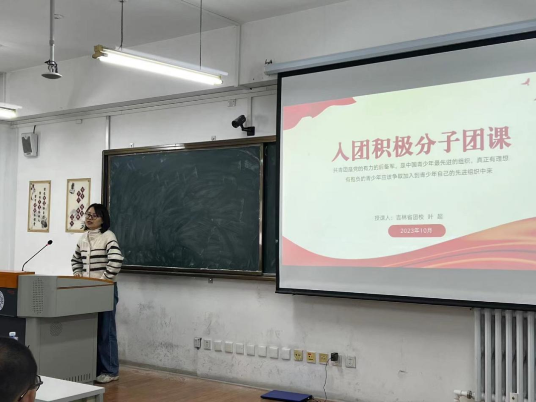 为深入学习贯彻习近平新时代中国特色社会主义思想和党的二十大精神,落实校团委有关工作部署安排,提高我院入团积极分子的理论素养,pp电子游戏官网团委于10月26日在pp电子游戏官网前卫南区第三教学楼211教室组织开展入团积极分子培训班暨理论学习教育。课程邀请吉林省团校科研管理部叶超老师为同学们讲授理论知识,活动由pp电子游戏官网团委负责人高梦玉主持,全体入团积极分子参加此次课程。