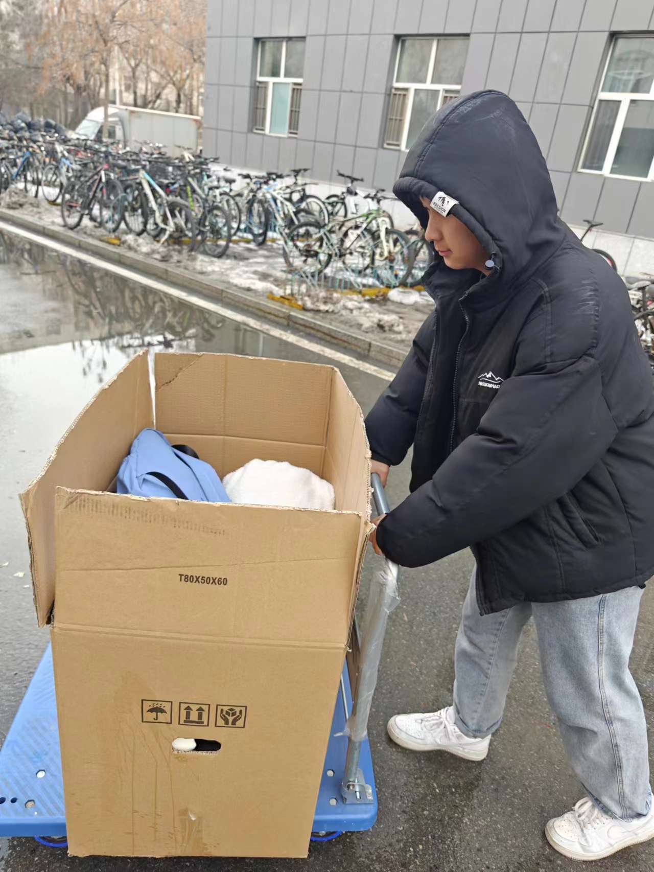 活动开始前夕,我院学生会通过线上线下会议等形式,制定活动方案,确定活动时间、活动地点等,采买纸箱,绘制宣传海报,制作活动报名表等,为活动顺利开展做好充足的准备,同时也为活动圆满完成打下坚实的基础。旧衣物捐赠活动正式开始后,学院学生组织分别在我校和平校区和中心校区两地收集旧衣物。志愿者们通过走寝、设置捐赠点相结合的方式收集同学们捐赠的旧衣物,广大师生积极踊跃地献爱心、送温暖。衣物收集分类后一袋袋登记打包的旧衣物承载着同学们的爱心与善良,志愿者们细心地用推车将收集到的旧衣物运送到指定地点,等待运送车辆的到来。将这一份份沉甸甸的爱心发往孩子们手中,让旧衣物被赋予新的意义,向需要的人传递爱的温度。