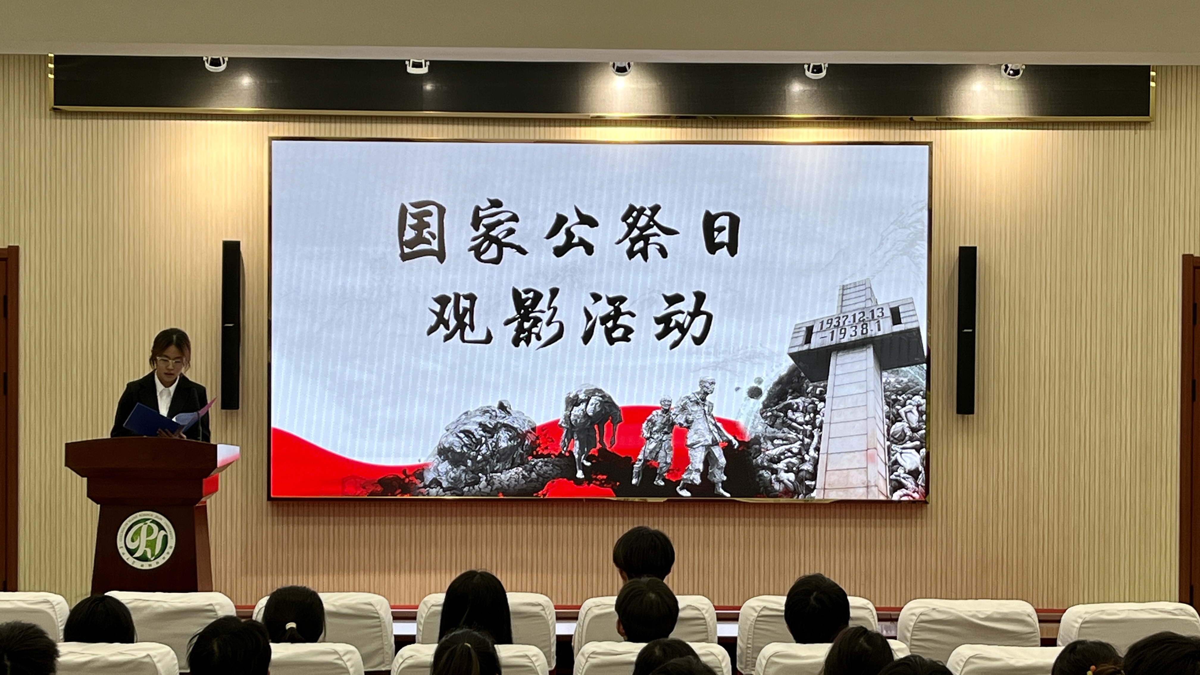 12月13日晚六点半,同学们在学院报告厅观看了以南京大屠杀为历史背景的电影《南京!南京!》。影片由陆川执导,刘烨、高圆圆、范伟等主演。影片通过一名普通日本士兵和一名普通中国士兵在南京大屠杀期间的经历,揭示了战争对人性的摧残。也揭示了侵华日军对中国人民对残暴罪行。观影结束后,同学们表示南京大屠杀是中华民族心中的伤痛,硝烟虽已远去,但国耻民殇不应忘记,我们绝不能忘记,也绝不会忘记。新时代青年应当牢记历史、不忘过去,珍爱和平、开创未来。
