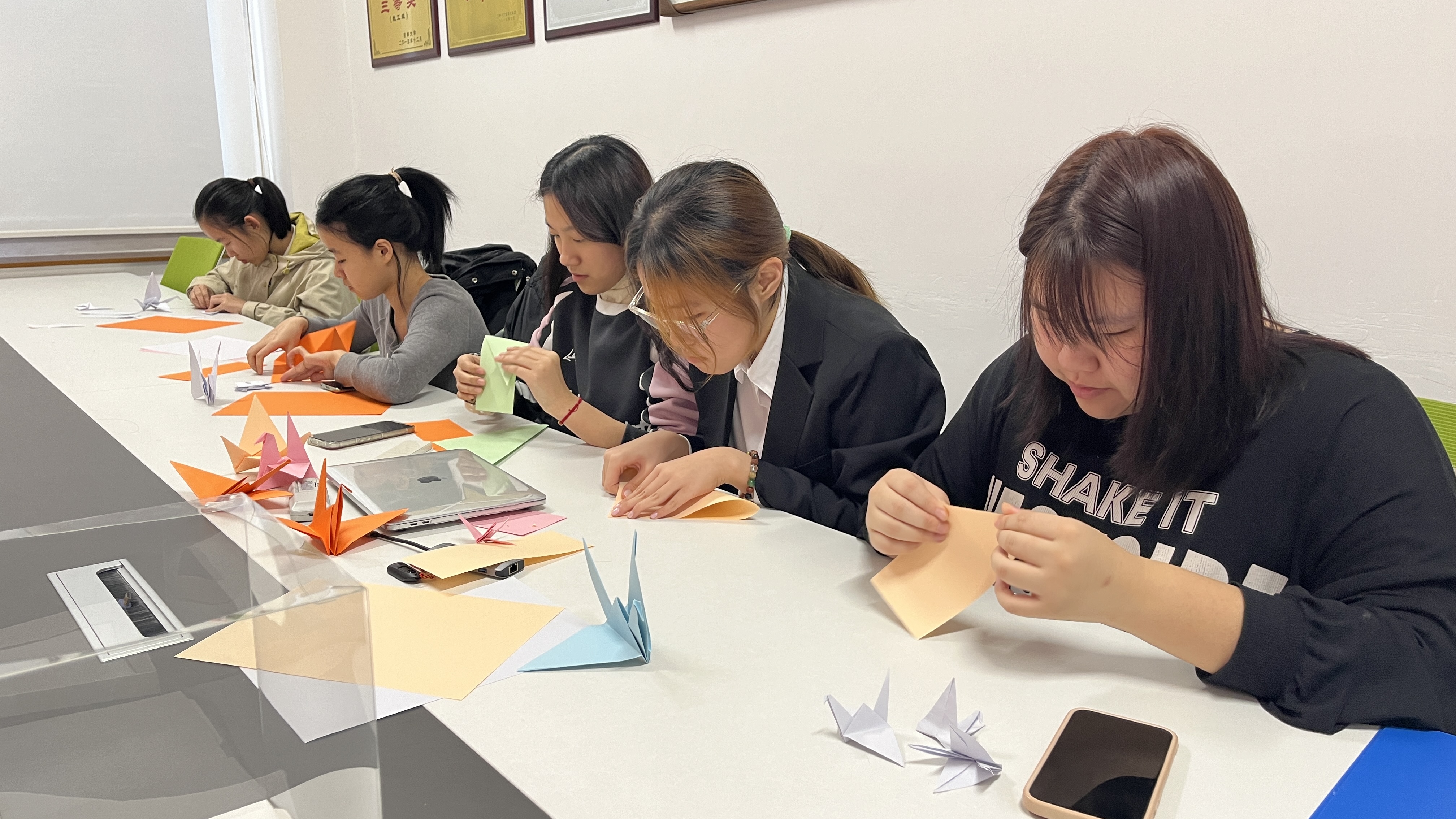 12月13日,pp电子游戏官网举办了“折纸为信,缅怀英灵”国家公祭日折纸活动,来自各个年级和专业的学生聚集在学院活动室,通过折叠千纸鹤来寄托哀思、祈愿和平。同学们首先学习了解了相关历史背景,之后在主持人的带领下宣读《和平宣言》。宣读结束后大家亲手制作了各色折纸。